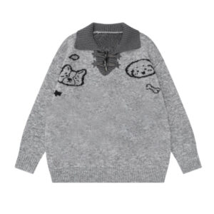 Gray Puppy Print Collared Sweater