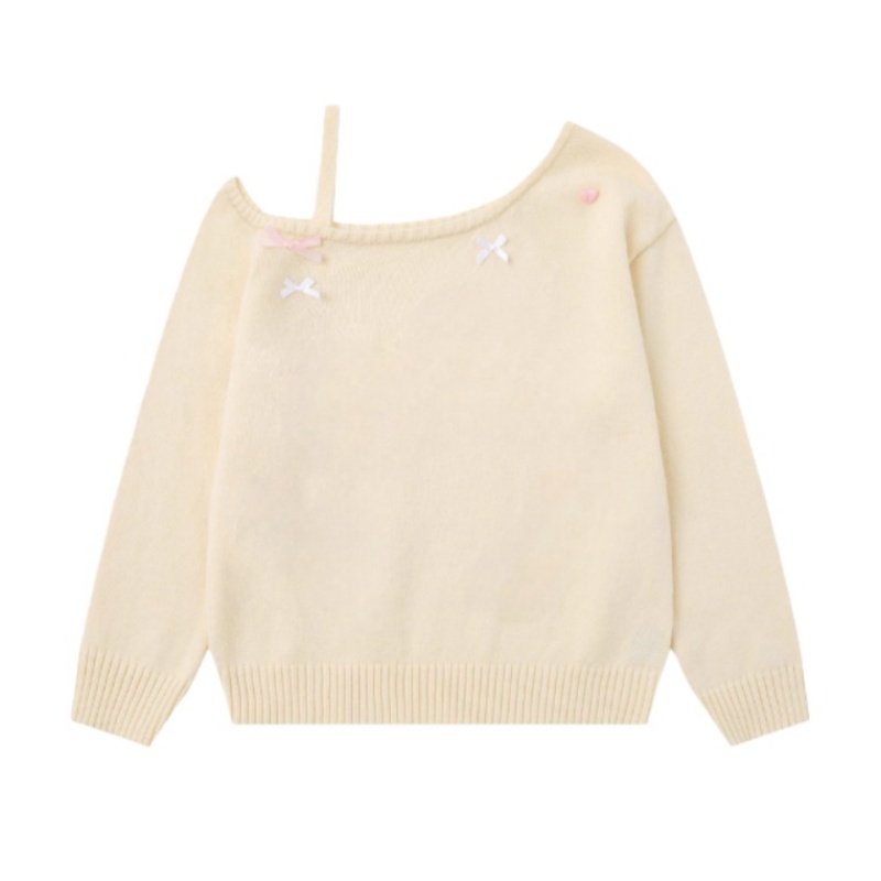Bow-Decorated Off-Shoulder Camisole Sweater